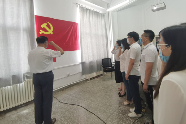“我志愿加入中国共产党,拥护党的纲领,遵守党的章程,……随时准备为党和人民牺牲一切,永不叛党。”在学院党委书记朱兴国的领誓下,全体党员通过网络视频,一起重温了入党誓词。在“讲述入党初心”环节,教师党员程颖、研究生党员张聪分享了各自的入党经历、工作学习表现和心得体会,同时表达了对党的99岁生日的美好祝福。