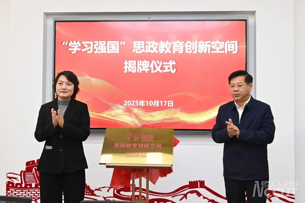 张丛、陈权共同为“学习强国”思政教育创新空间揭牌,该空间的正式启用,标志着权威理论平台与高校思政教育实践进入深度融合新阶段,为校内外师生提供沉浸式、互动式、智能化的思政教育新场域。
