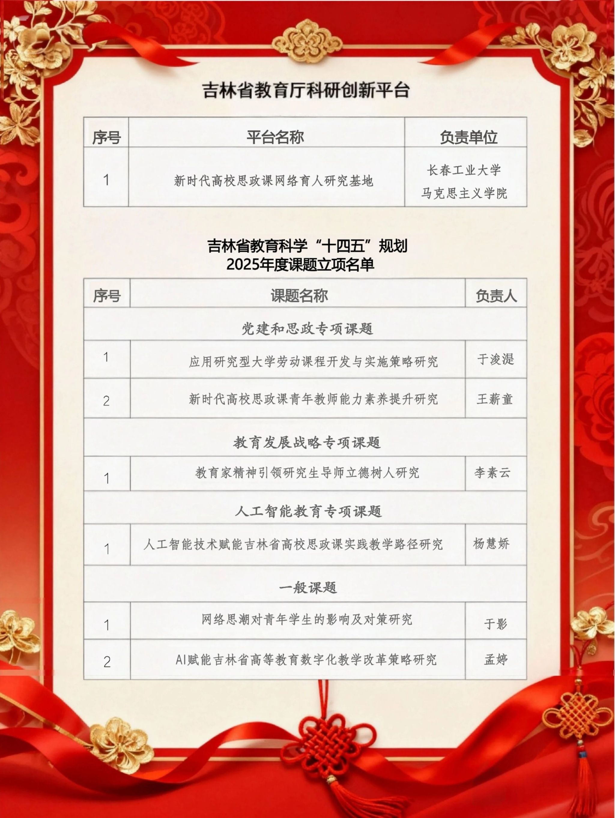 2025年,学院科研攻坚成效初显,“新时代高校思政课网络育人研究基地” 获批吉林省教育厅科研创新平台,在项目申报过程中,充分发挥团队力量,六位教师同时成功申报吉林省教育科学规划项目,全院形成了浓厚的学术氛围。