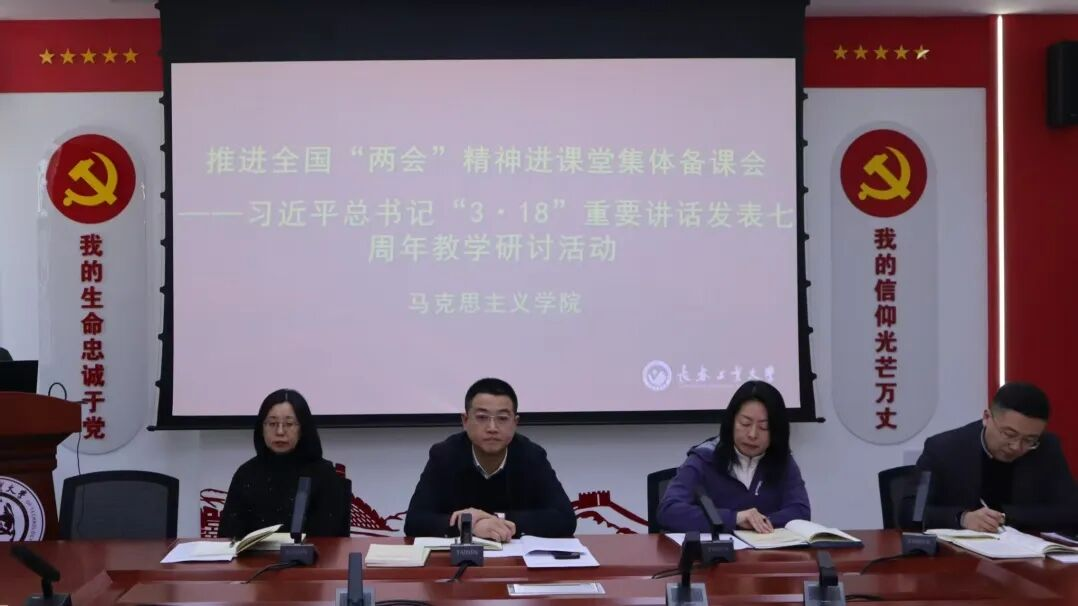“理论只要彻底,就能说服人。”“马克思主义基本原理”教研室辛欣老师结合2026年全国两会的最新精神,阐述了马克思主义基本原理的时代价值。她表示,作为思政课教师,必须先学一步、学深一层,将两会中提出的新论断、新要求精准融入原理课教学。要用鲜活的当代实践印证马克思主义的强大生命力,讲清楚“两个结合”的理论逻辑,担当起新时代的育人使命,让真理的光芒照亮青年心灵。